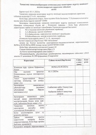 Тамақтану сапасына мониторинг жүргізу жөніндегі ведомство аралық сараптама тобының актісі